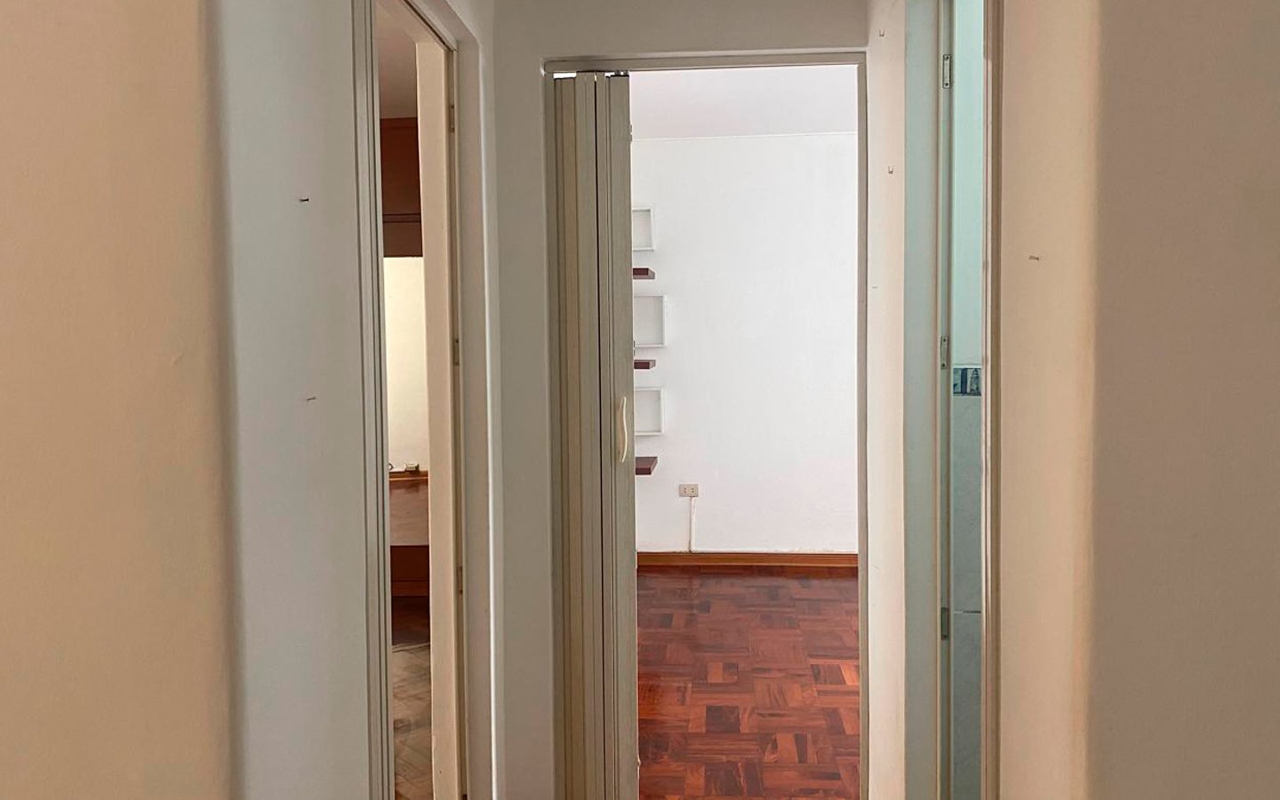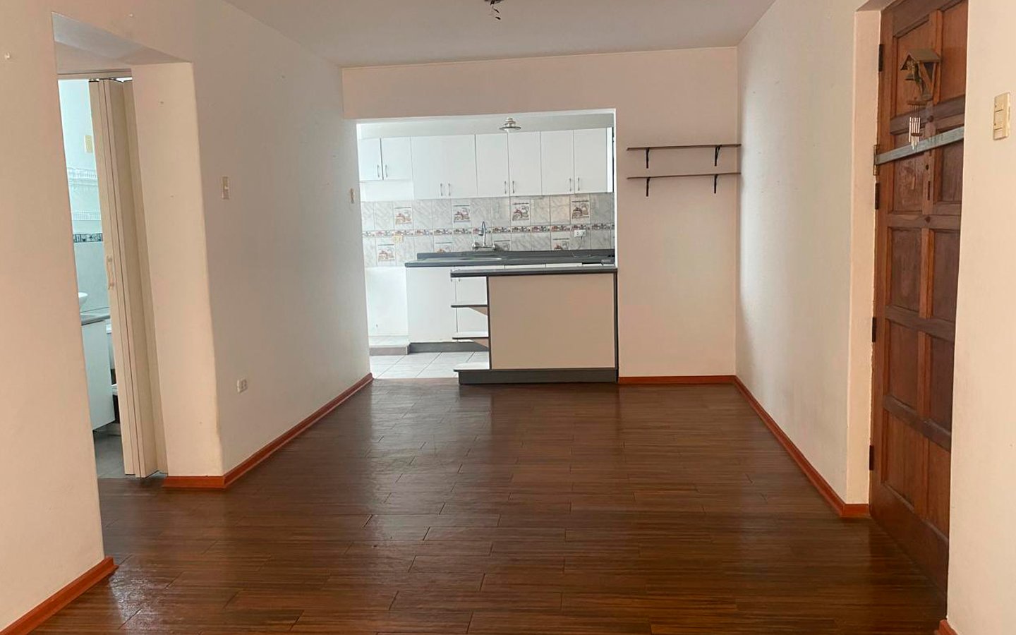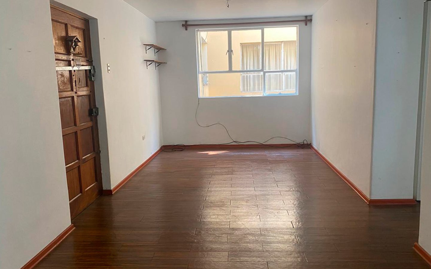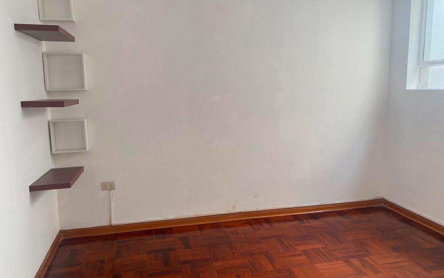 • Pisos: Todo el departamento cuenta con pisos de parquet en buen estado.