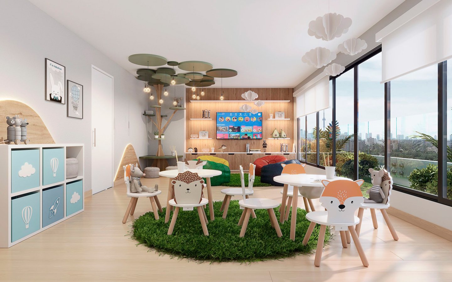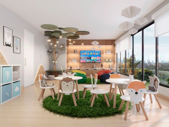 šŸ”¹ Ɓreas comunes: lobby, gimnasio, coworking, sky bar, smart cafĆ©, zona de parrilla, terraza, SUM, sala de juegos para niƱos, lounge