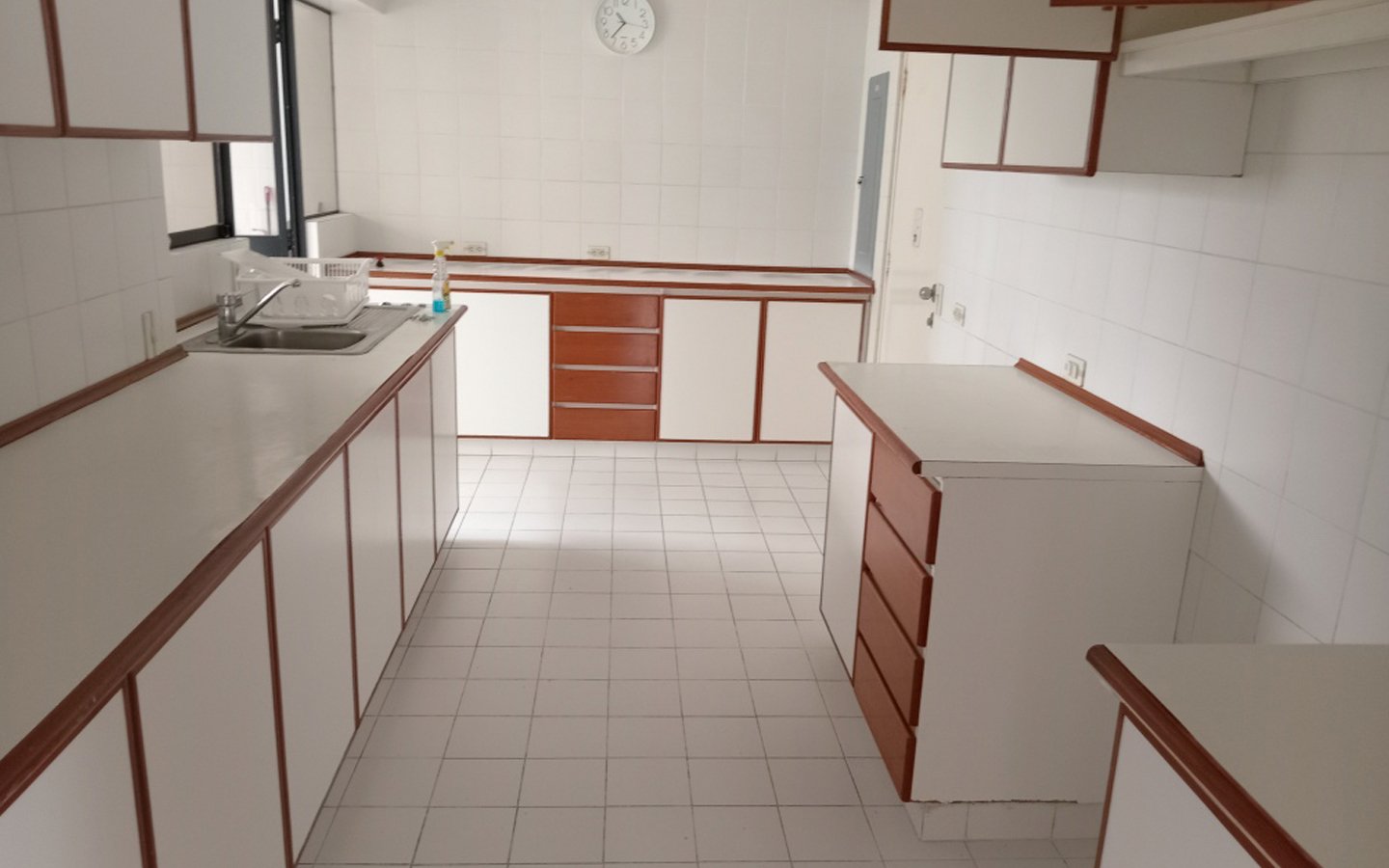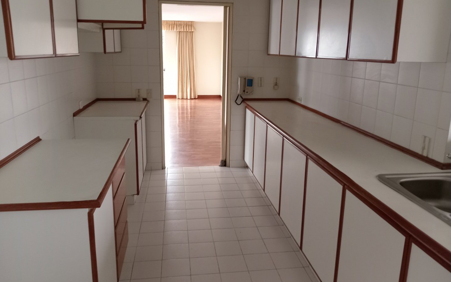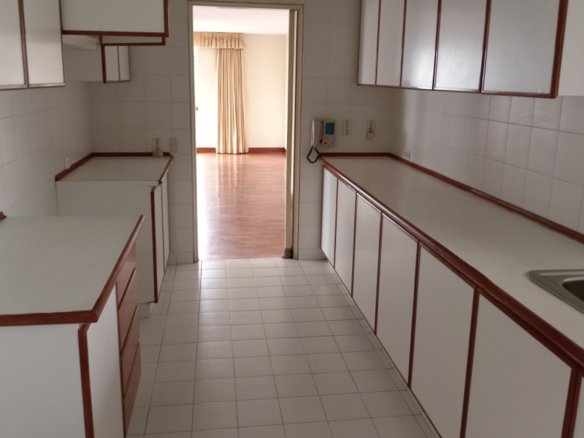 - Cocina con reposteros altos y bajos, área para comedor de diario, con puerta de servicio