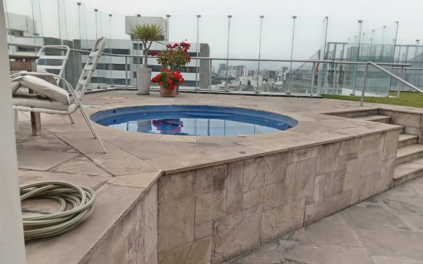 Piso 21: terraza para tomar sol con 1 pequeña piscina y 1 jacuzzi, donde no hay que pedir autorización, los propietarios lo utilizan cuando deseen