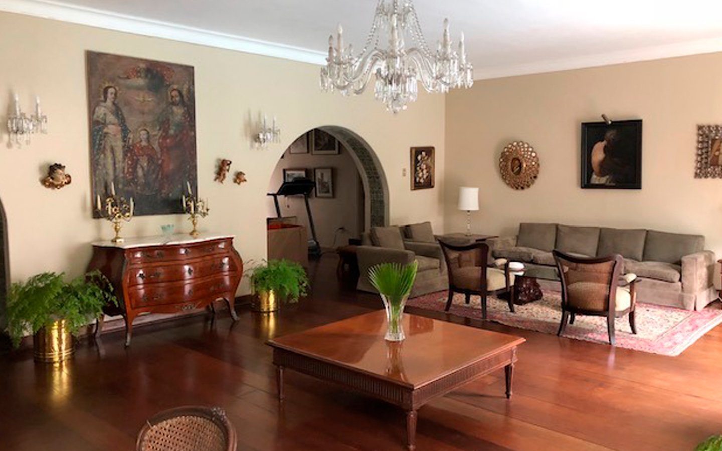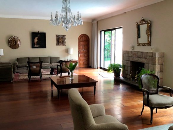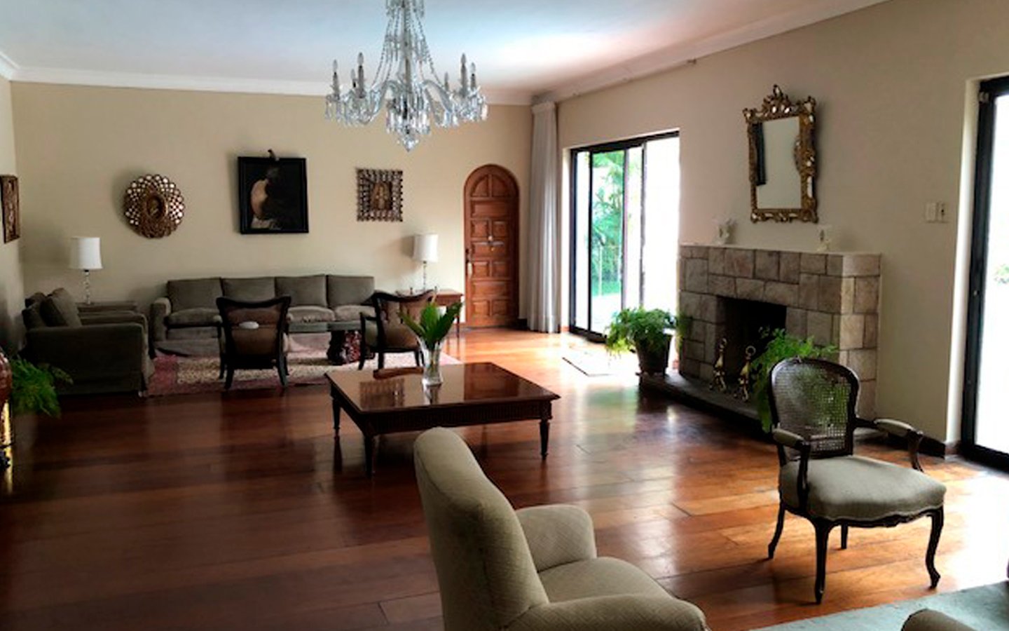 4 salas, chimenea, comedor, comedor de diario, cocina cerrada, lavandería, escritorio, estar familiar, 4 dormitorios, walk-in closet, 8baños, 3 baños incorporados, 3 cuartos de servicio, 3 baños de servicio, 2 cocheras tipo paralelas, pisos de madera en área privada, pisos de madera en área social, terraza, jardín interior, patio, jardín, piscina.