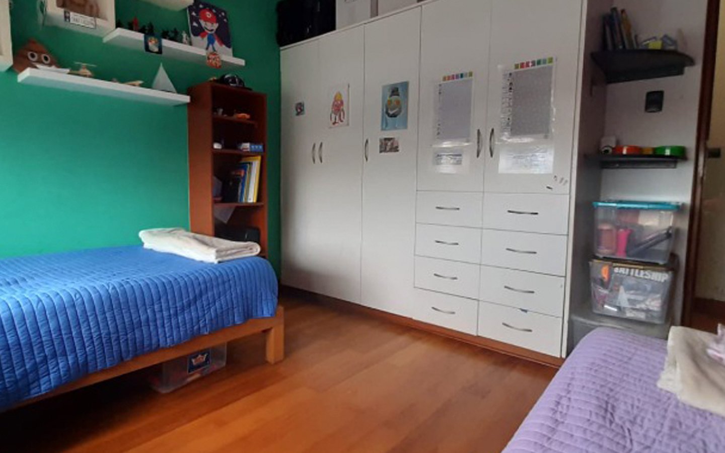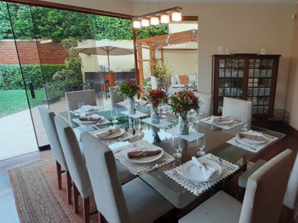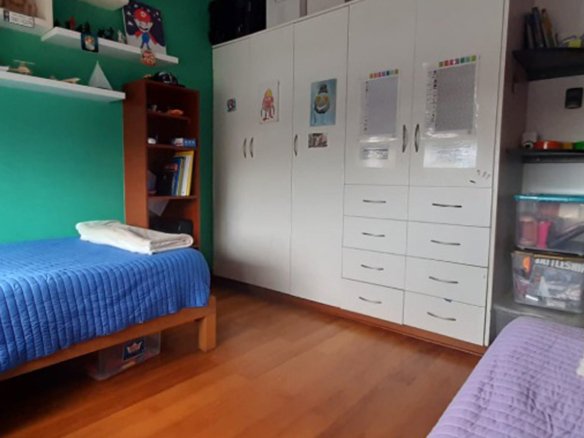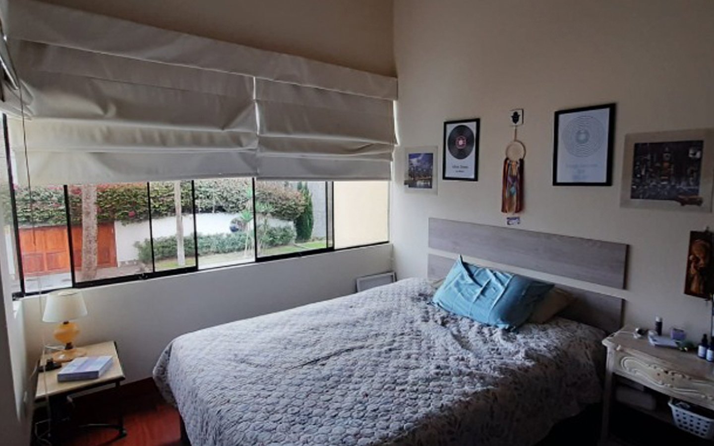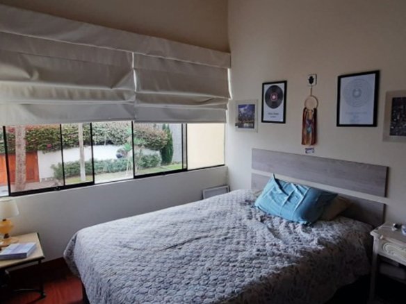 4 dormitorios, el principal con baño incorporado y walk in closet, un secundario también con baño incorporado, los otros dos comparten un baño, todas las habitaciones tienen vista al jardín