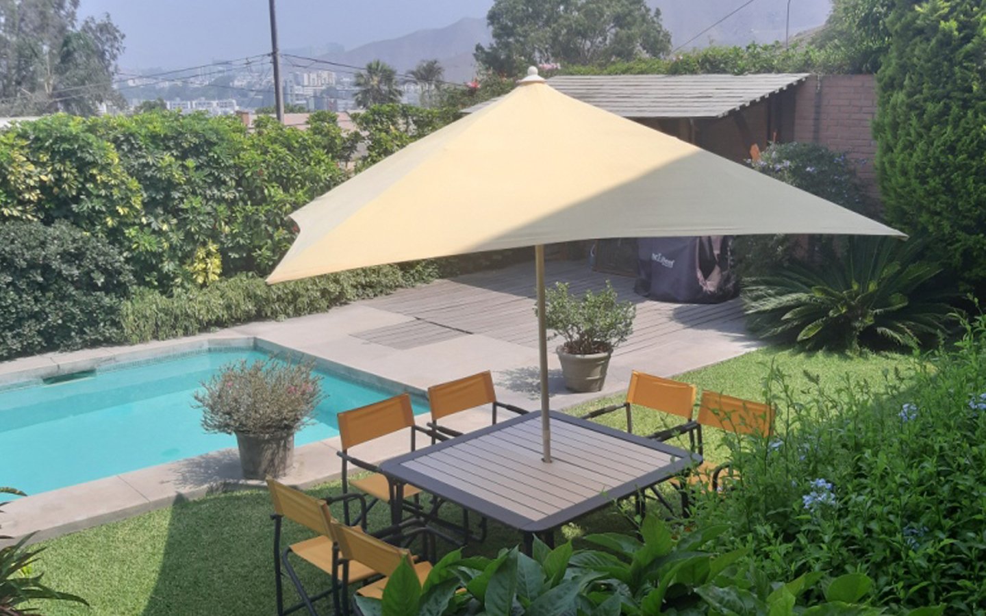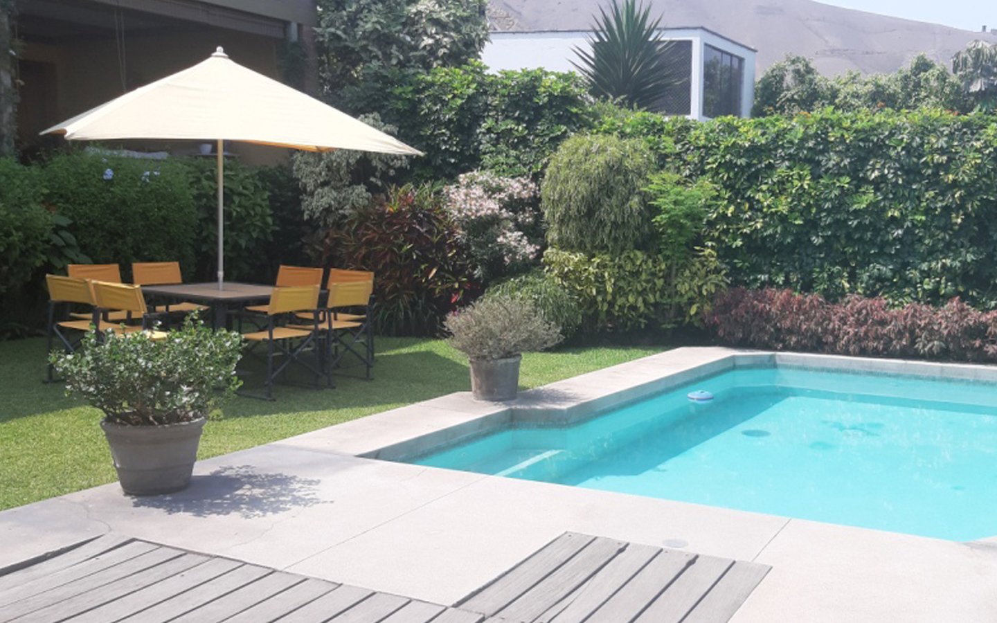 • sala de estar grande, segunda sala de estar con vista a piscina y al jardín (puede ser un 4° dormitorio).