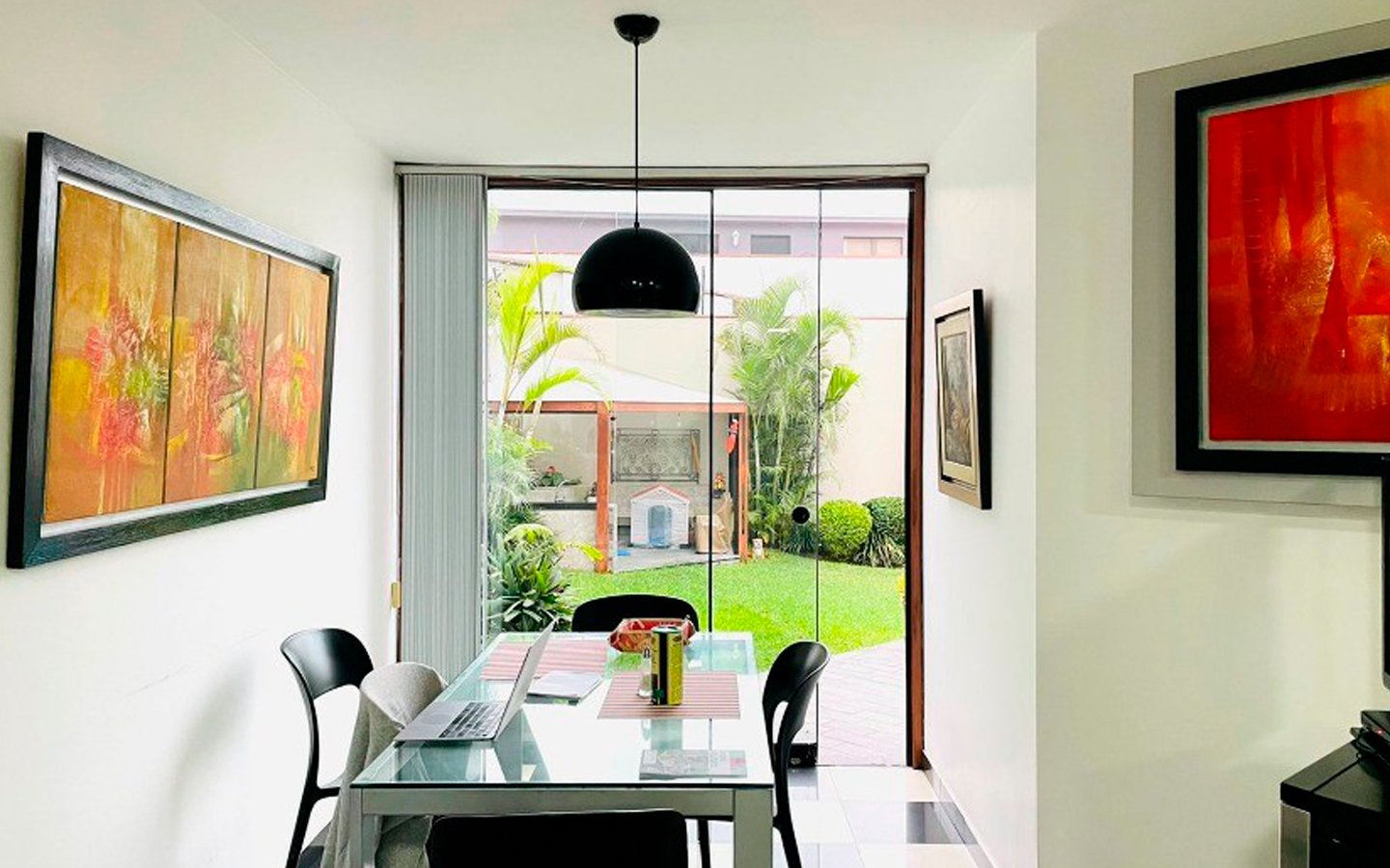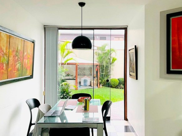 Casa en desniveles, amplia sala y comedor que colindan con la terraza, con área de BBQ y una linda piscina con cascada