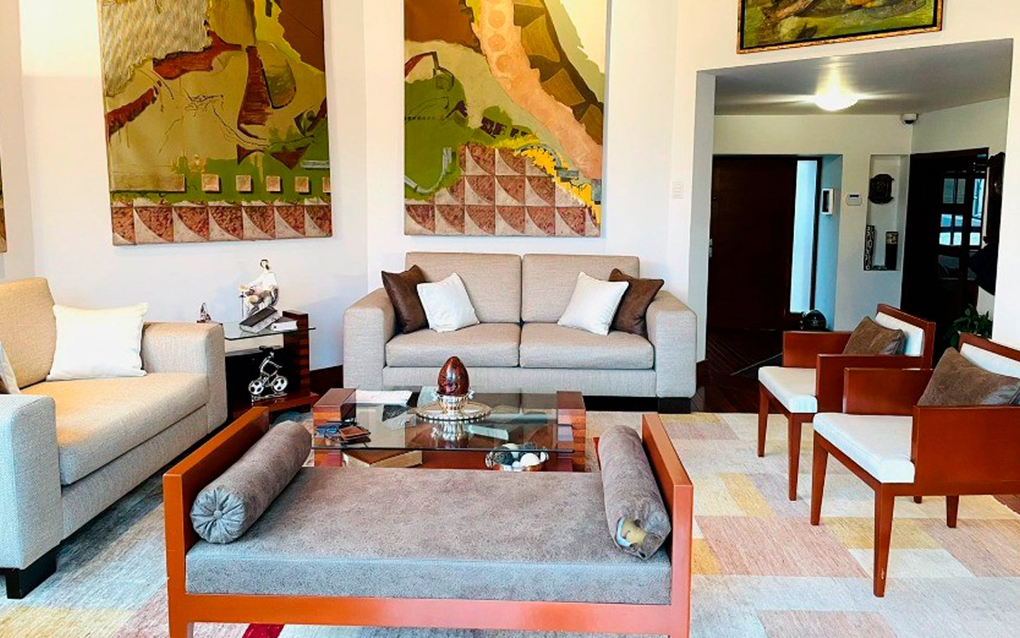 Hall de ingreso, sala, comedor, comedor de diario, cocina, escritorio, 4 dormitorios, 5 baños, 1 baño incorporado, 1 cuarto de servicio, 1 baño de servicio, lavandería.