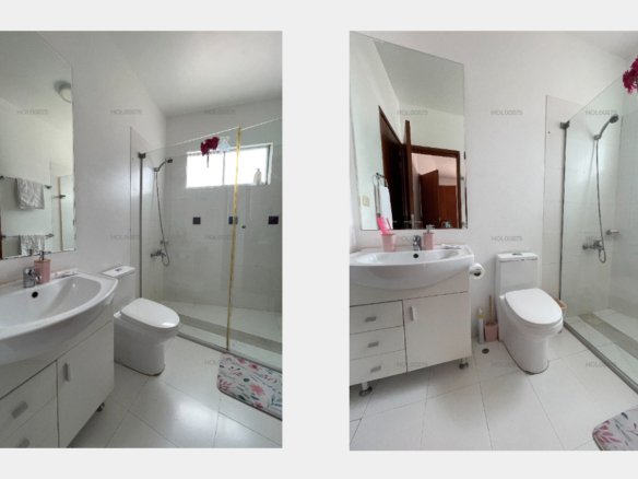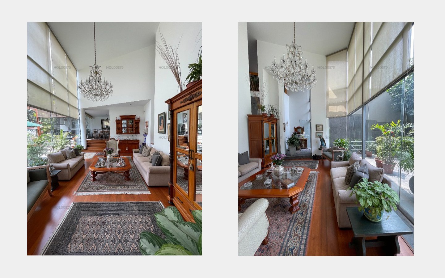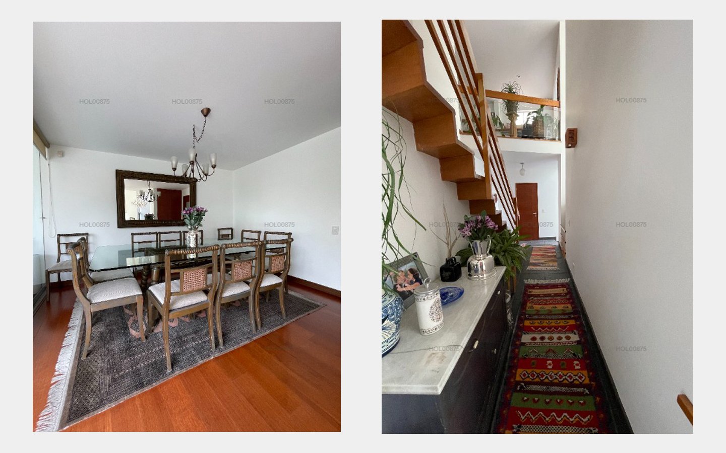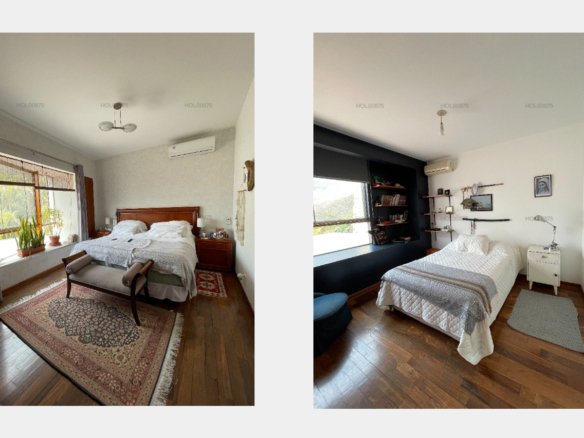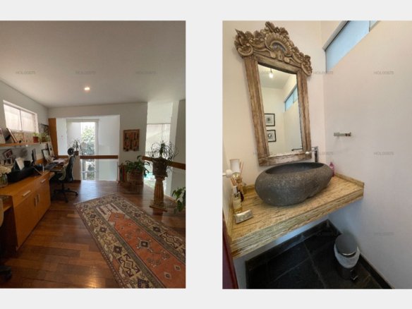 Hall, 1 sala, comedor, comedor de diario, cocina cerrada, lavandería, escritorio, estar familiar, 5 dormitorios, walk-in closet, 5 baños, 3 baños incorporados, tina en el baño, 1 cuarto de servicio, 1 baño de servicio, pisos de madera en área privada, pisos de madera en área social, terraza, jardín interior, patio, jardín, piscina, parrilla.