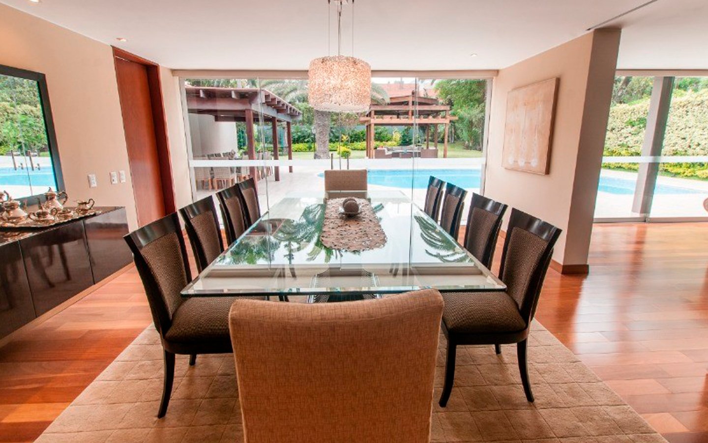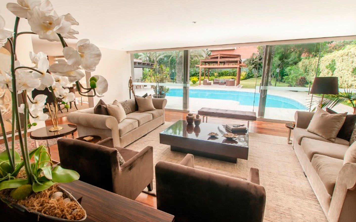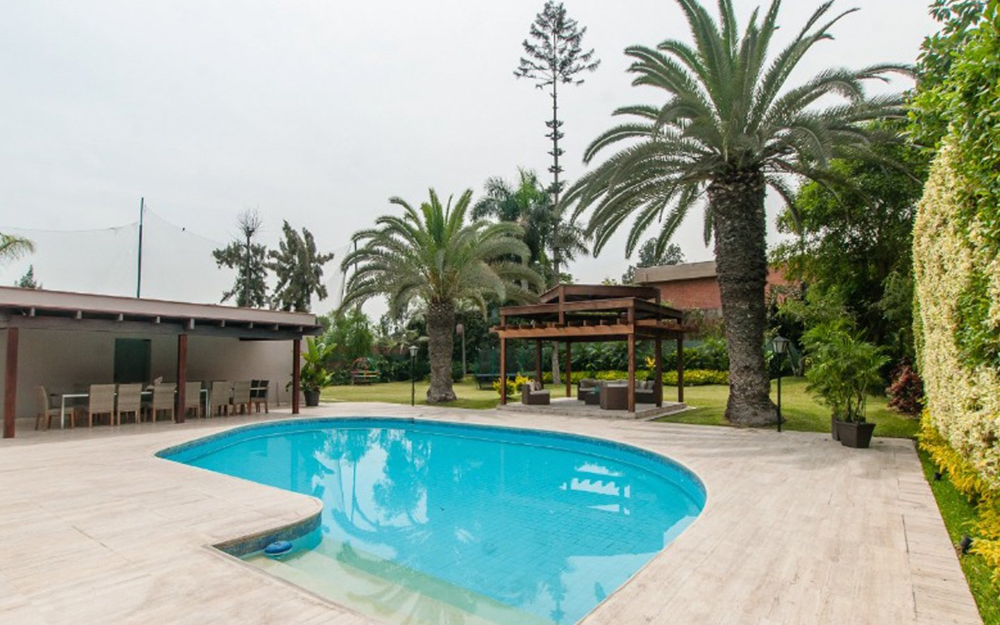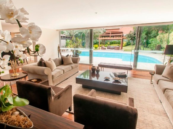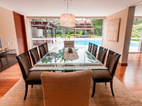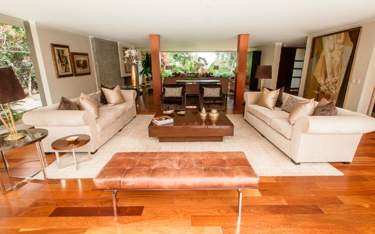 2 salas, comedor, comedor de diario, cocina, escritorio, sala de estar, 5 dormitorios, 7 baños, 5 baños incorporados, 2 cuartos de servicio, 1 baño de servicio, lavandería, pisos de madera en área social, pisos de madera en área privada, terraza, jardín, piscina, aire acondicionado, patio, parrilla, chimenea, jacuzzi.
