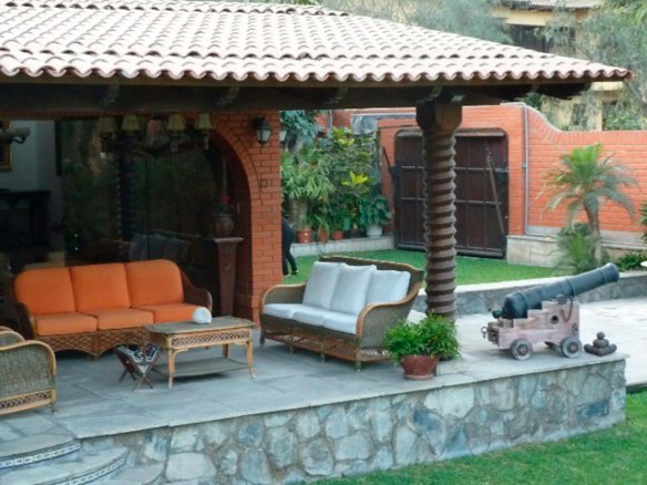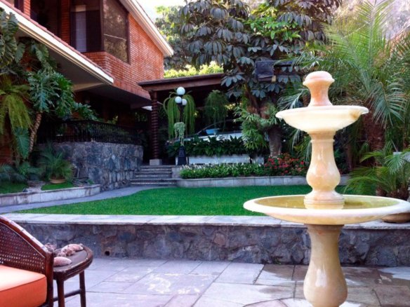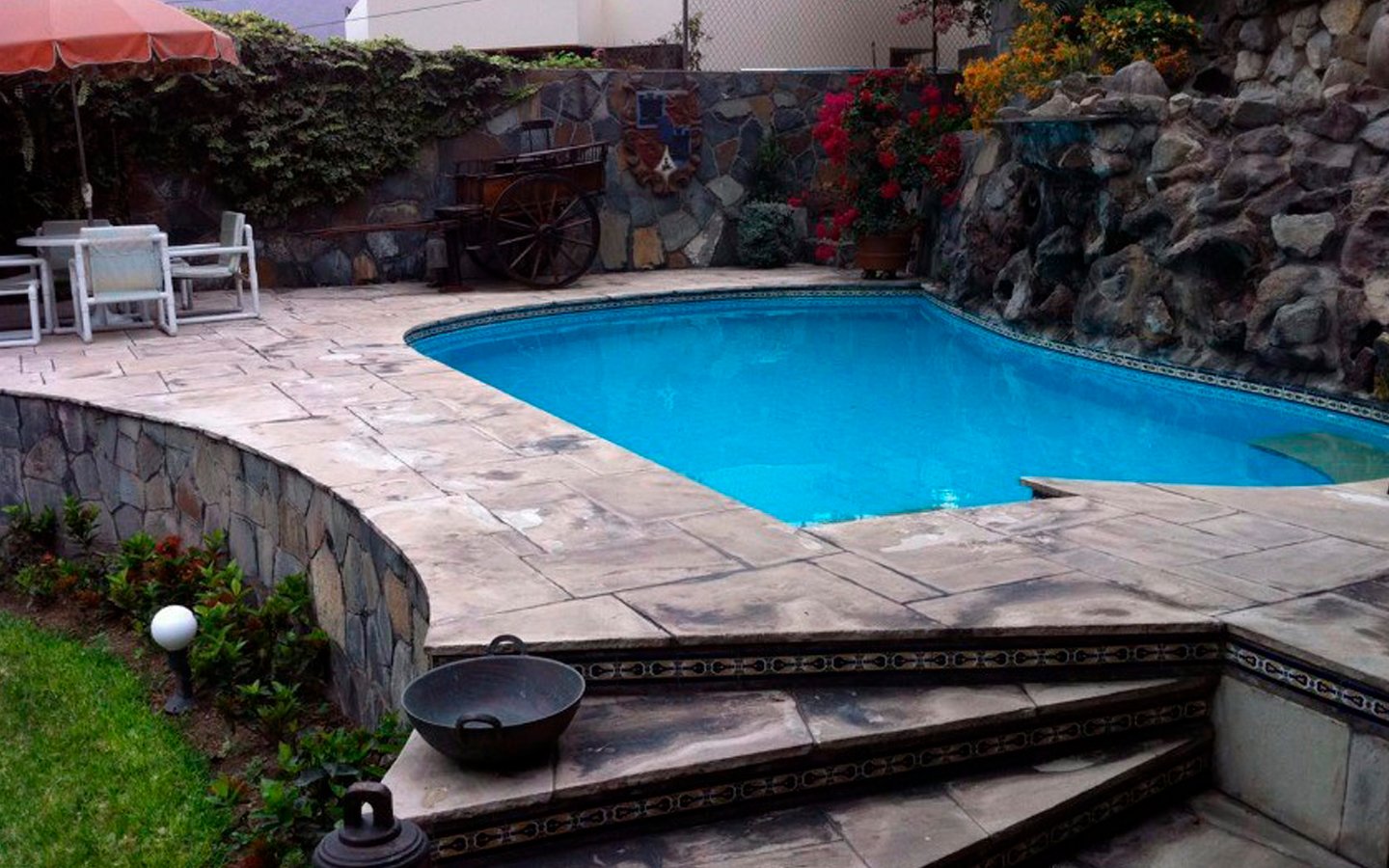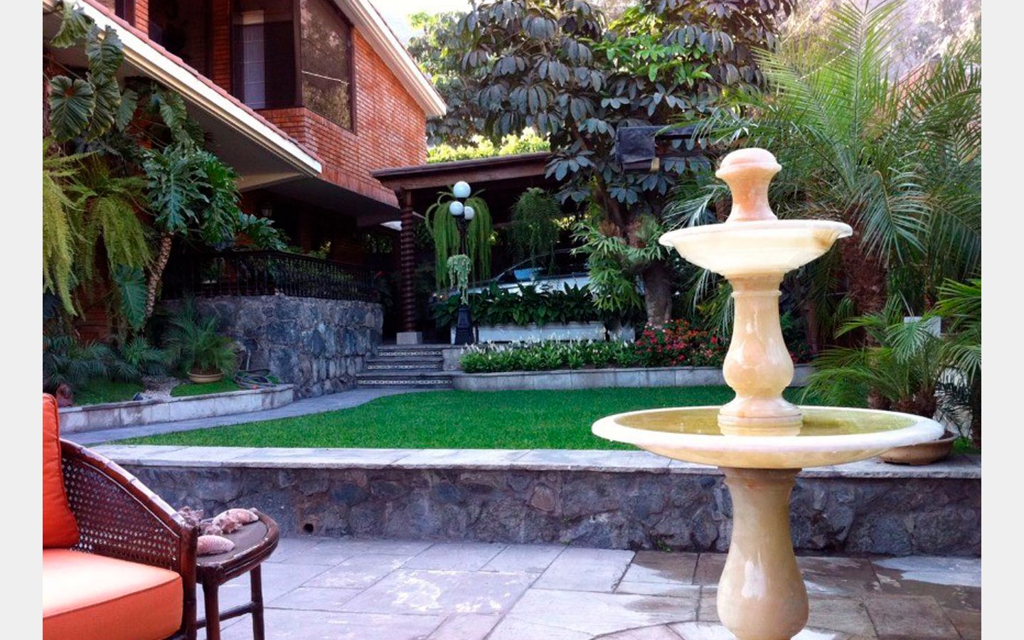 Terraza, jardín, piscina, 4 cocheras tipo paralelas.
