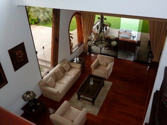 Hall de ingreso, sala, comedor, comedor de diario, cocina, escritorio, sala de estar, 4 dormitorios, 4 baños, 2 baños incorporados, 1 cuarto de servicio, 1 baño de servicio, lavandería, pisos de madera en área social, pisos de madera en área privada.