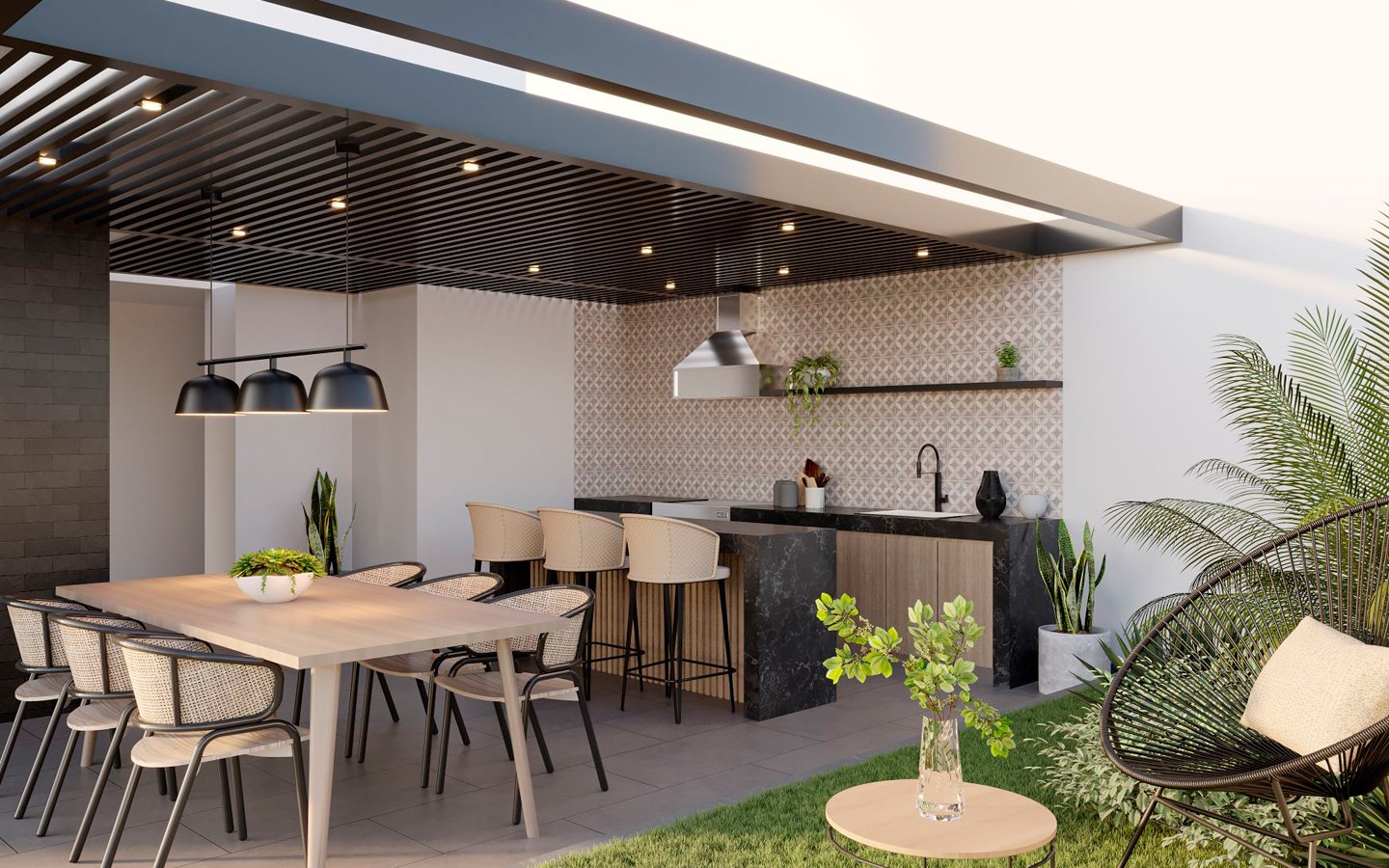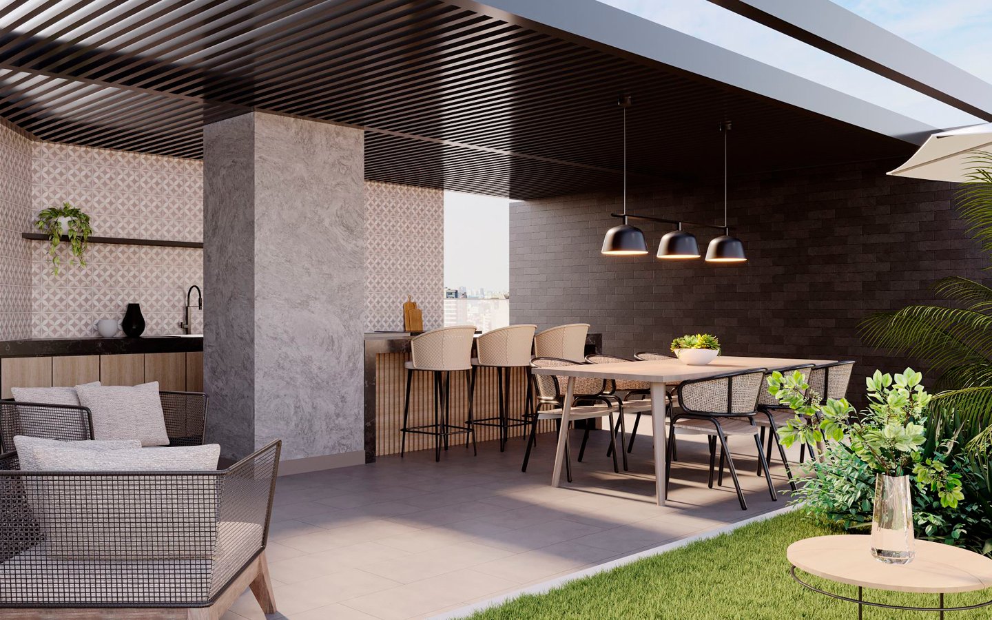 • ÁREAS COMUNES: LOBBY, GIMNASIO, ZONA DE PARRILLAS, PET ZONE, PISCINA, SALA GOURMET, SALA DE JUEGOS, COWORKING, BAR, SUM, SALA DE REUNIONES, ESTACIONAMIENTO PARA BICICLETAS.
