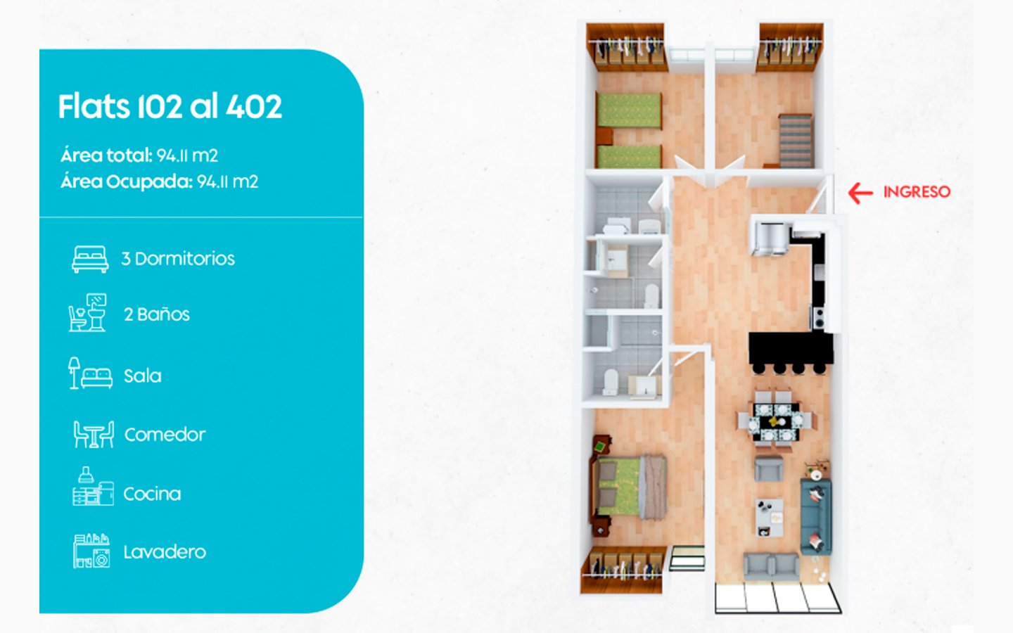 - MODELOS: FLATS Y DÚPLEX DE 2 Y 3 DORMITORIOS (OPCIÓN DE 1 DORMITORIO ADICIONAL EN ALGUNOS CASOS)