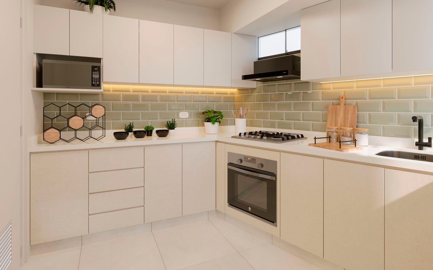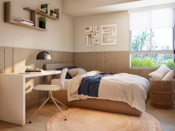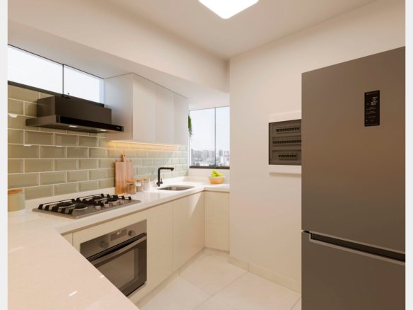- Áreas comunes: Lobby, Terraza con Parrilla, Jardín Interior, Lounge Familiar, Estacionamiento para Bicicletas
