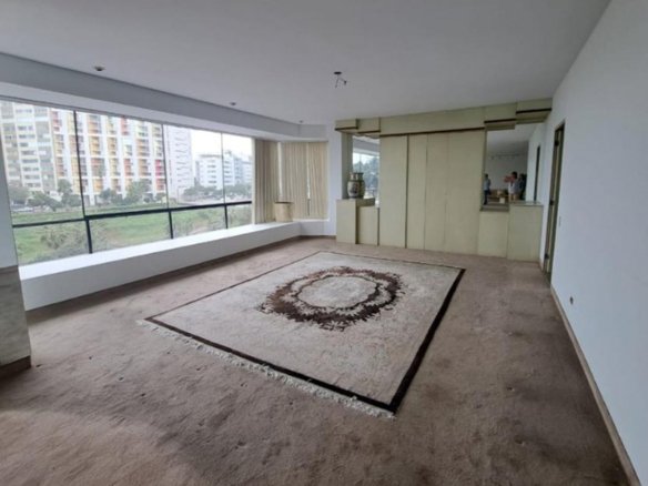 Hall, 2 salas, living-comedor, comedor, comedor de diario, cocina cerrada, lavandería, escritorio, estar familiar, 3 dormitorios, walk-in closet, 3.5 baños, 3 baños incorporados, 1 cuarto de servicio, 1 baño de servicio, pisos de alfombrado en área privada, pisos de alfombrado en área social, 2 ascensores, ascensor directo, ascensor de servicio, ascensor.
