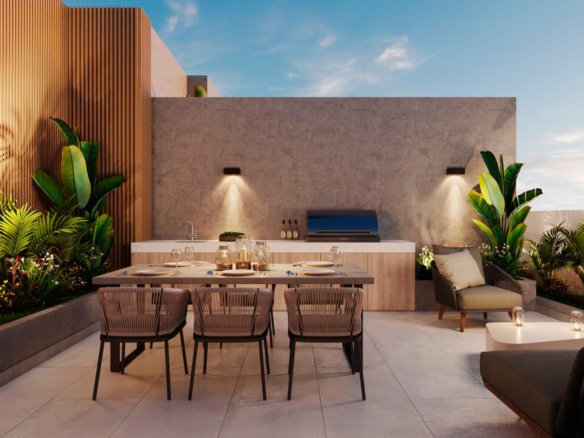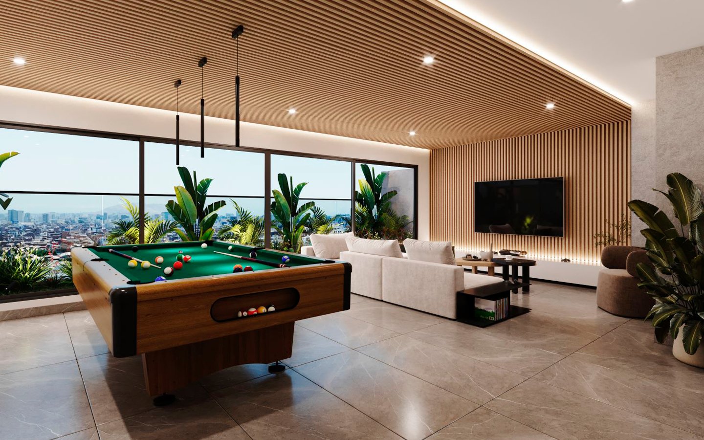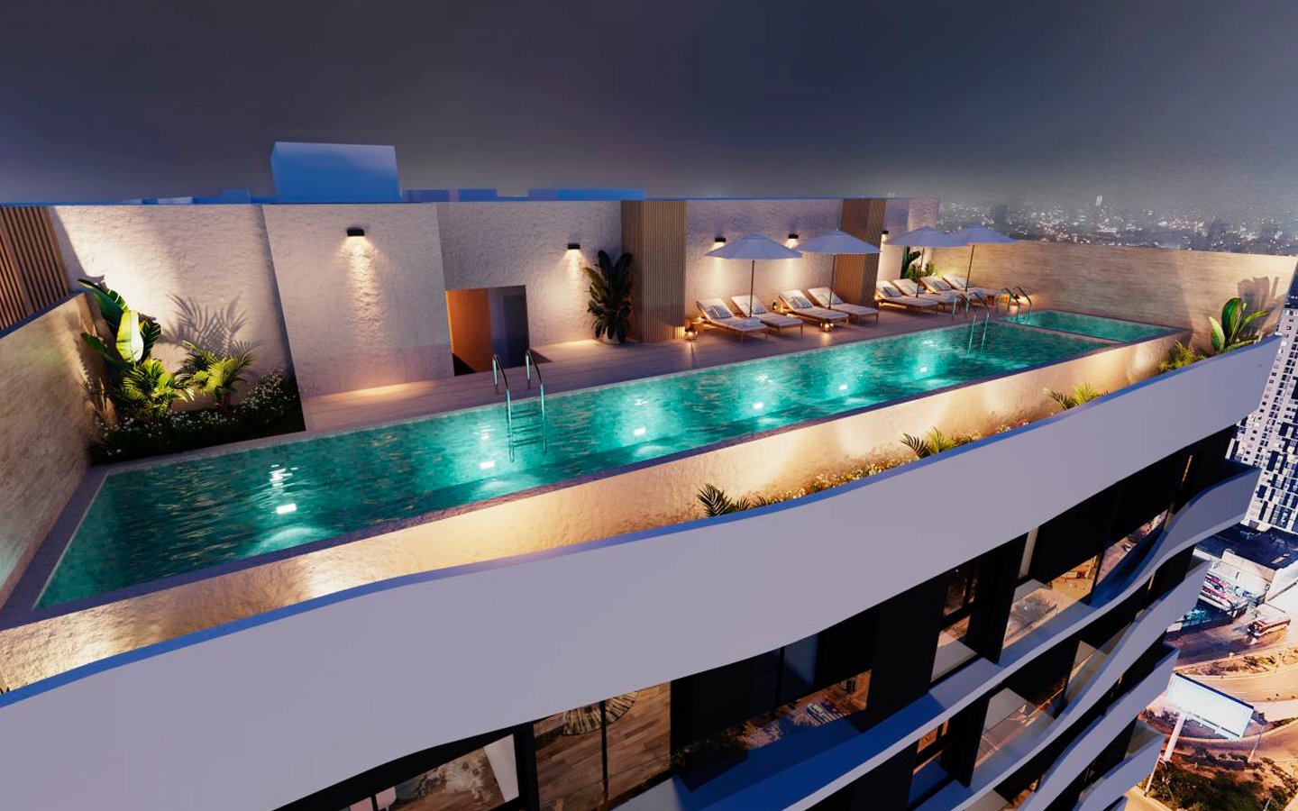 - ÁREAS COMUNES: LOBBY, PISCINA, ZONA DE PARRILLAS, LOUNGE BAR, ZONA DE JUEGOS, GIMNASIO, ZONA DE YOGA, COWORKING, ESTACIONAMIENTOS PARA BICICLETAS