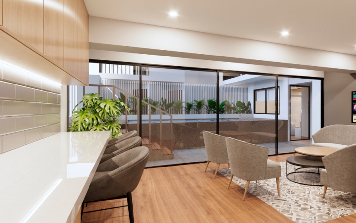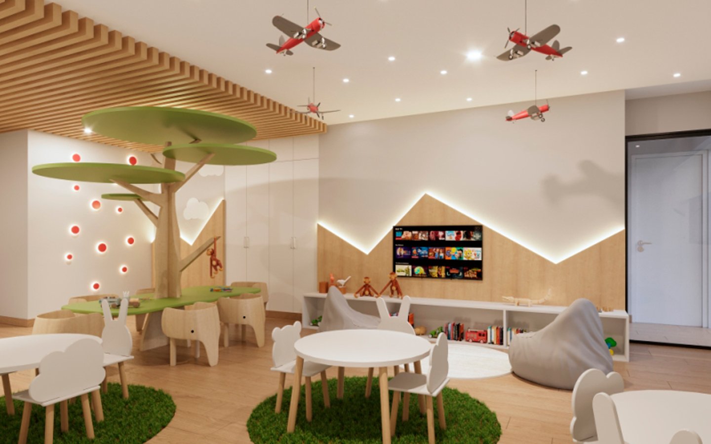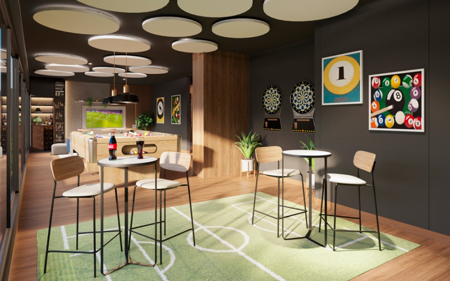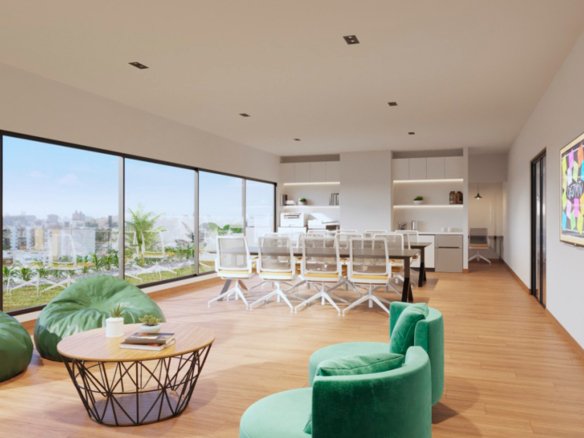 - ÁREAS COMUNES: SALA DE JUEGOS PARA NIÑOS, ESTACIONAMIENTO DE BICICLETAS, GIMNASIO, SALA GOURMET, TERRAZA, ÁREA DE PARRILLA, ZONA PARA JÓVENES, CO-WORKING, PISCINA Y BAR