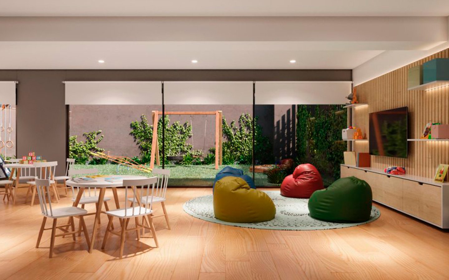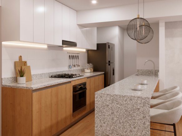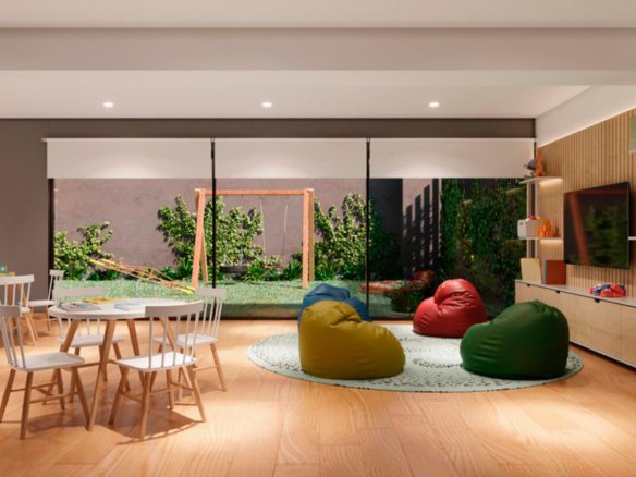 - ÁREAS COMUNES: LOBBY, SALA DE NIÑOS, ESTACIONAMIENTO DE BICICLETAS, GIMNASIO, TERRAZA, ÁREA DE PARRILLA, CO-WORKING, ZONA DE JÓVENES, PISCINA Y ZONA BAR